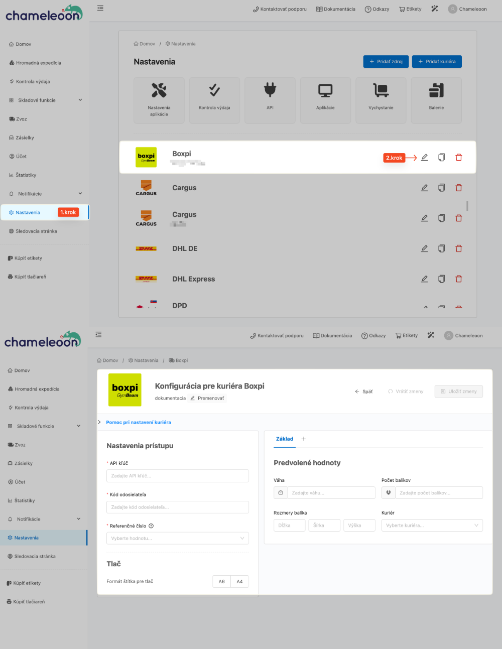 - Umožňuje zvoliť želaného prepravcu, ktorého chcete v rámci Boxpi používať.