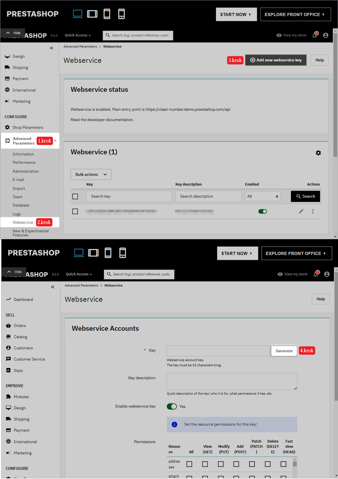 Tento návod popisuje postup pre vygenerovanie API kľúča pre PrestaShop verzie 1.8.